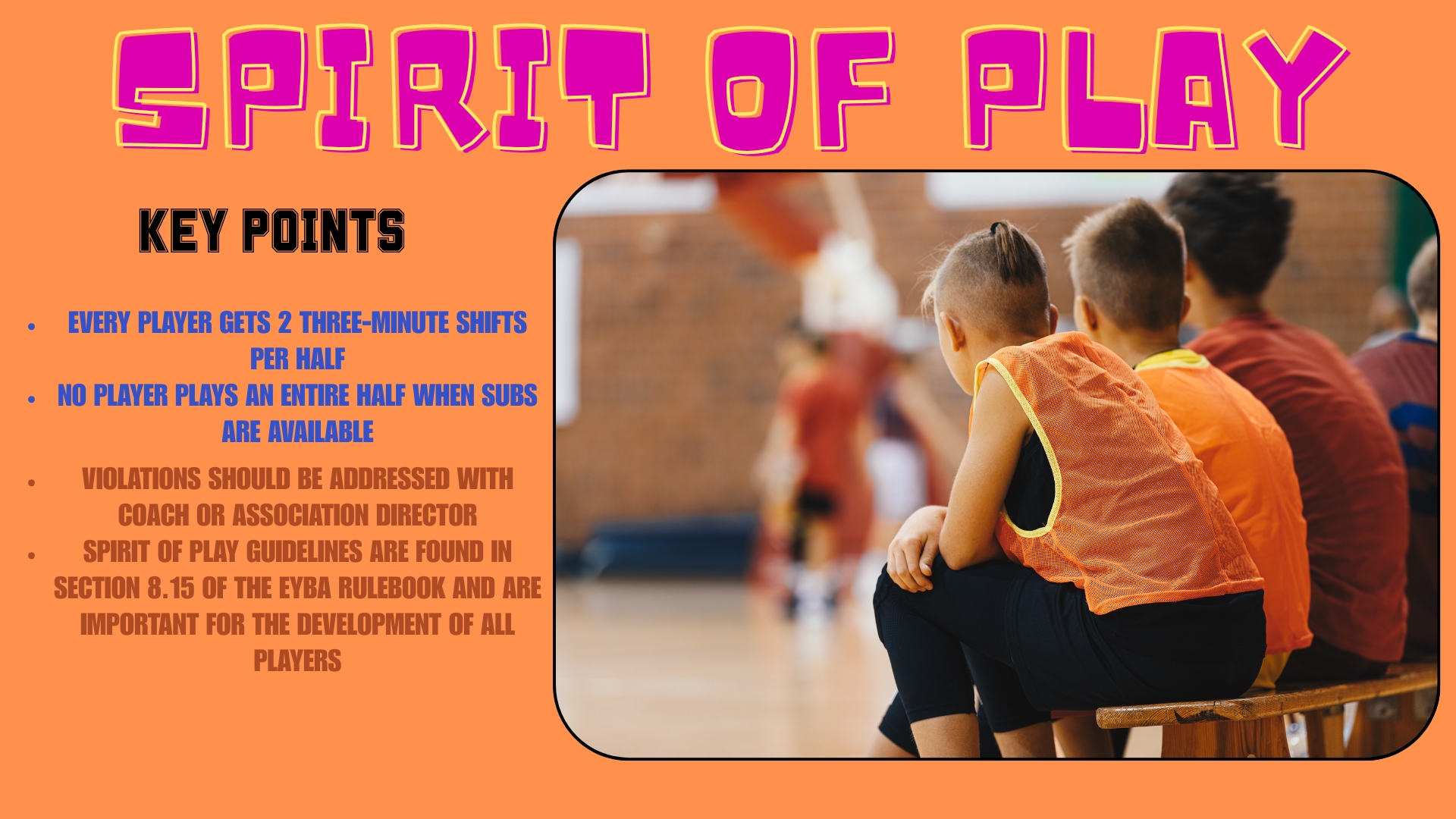We have fielded a few comments and complaints about teams not adhering to the “Spirit of Play” guidelines outlines in Section 8.15 of the EYBA Rulebook: